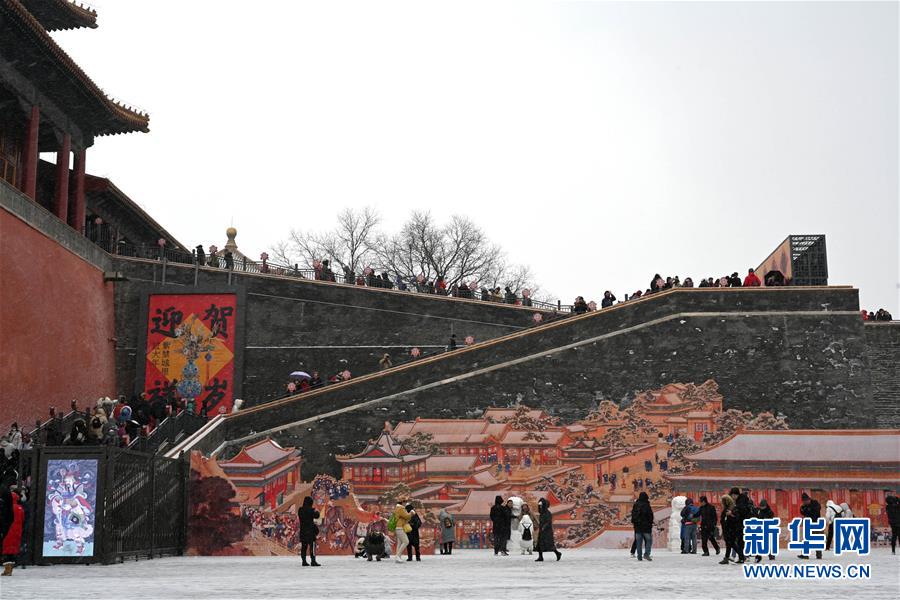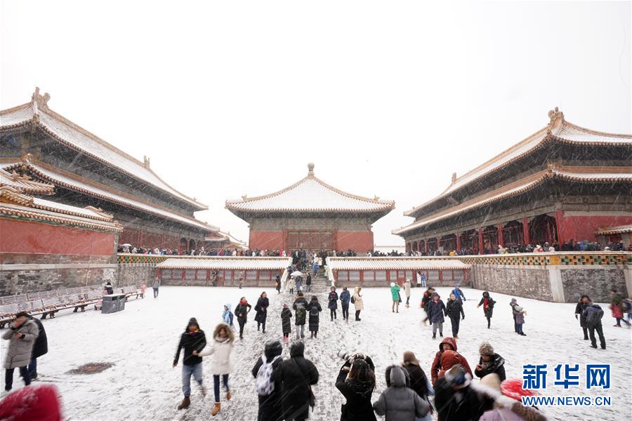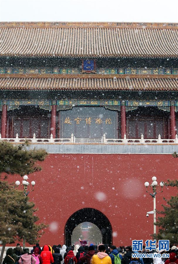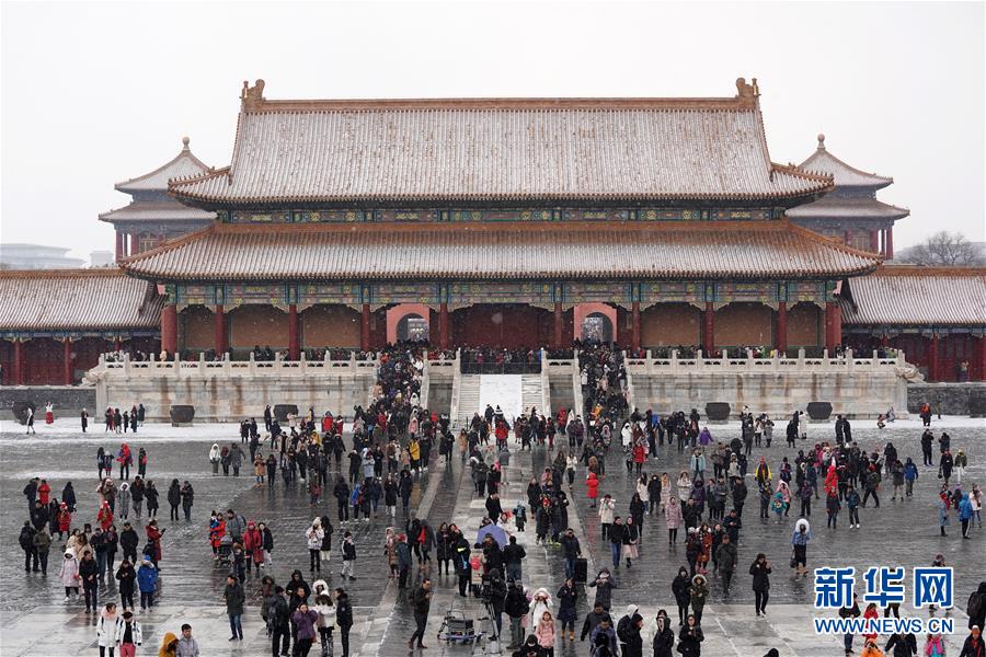2月14日,游客在雪中游覽北京故宮。 當日,北京降雪,大批游人來到故宮游覽賞雪。 新華社記者 金良快 攝