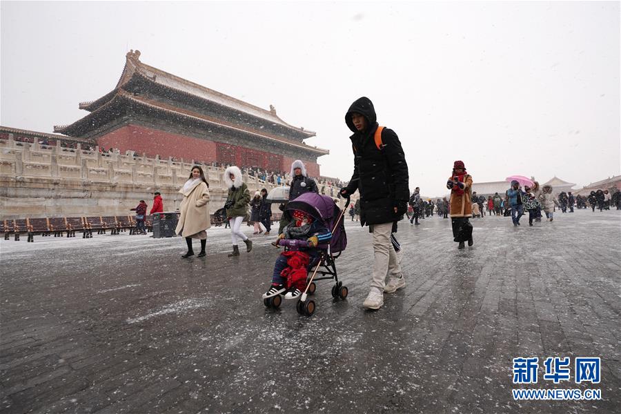 2月14日,游客在雪中游覽北京故宮。 當(dāng)日,北京降雪,大批游人來到故宮游覽賞雪。 新華社記者 鞠煥宗 攝