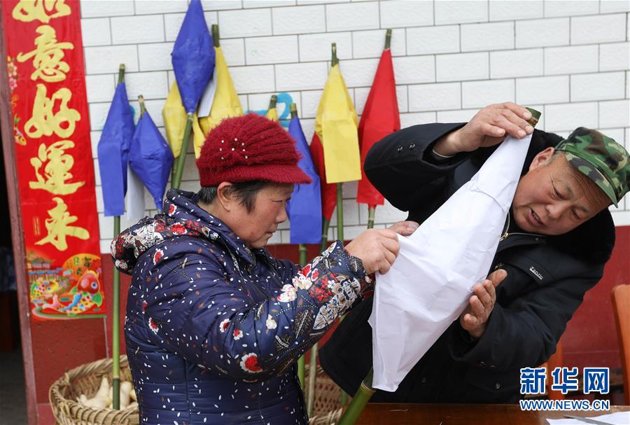 2月18日,在四川省南充市嘉陵區(qū)金寶鎮(zhèn)和祥社區(qū),65歲的李樹會(右)和老伴制作“蠐蟆燈”。 當(dāng)日是農(nóng)歷正月十四,夜幕降臨后,川渝等地數(shù)萬名群眾在四川省南充市嘉陵區(qū)金寶鎮(zhèn)匯聚,點亮“蠐蟆燈”,敲著鑼鼓唱著歌謠,將“蠐蟆”送到幾公里外的田邊或者河邊燒掉,祈福健康平安。星星點點的燈光在鄉(xiāng)間小路閃爍移動,場面壯觀熱烈。 “送蠐蟆”祈福這一習(xí)俗源于清朝,歷經(jīng)演變成為川東北地區(qū)一個古老而神秘的地方民俗節(jié)日。 新華社記者 江宏景 攝