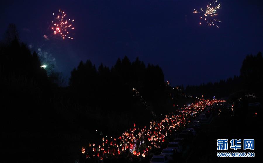 2月18日,群眾在四川省南充市嘉陵區(qū)金寶鎮(zhèn)點亮“蠐蟆燈”。 當(dāng)日是農(nóng)歷正月十四,夜幕降臨后,川渝等地數(shù)萬名群眾在四川省南充市嘉陵區(qū)金寶鎮(zhèn)匯聚,點亮“蠐蟆燈”,敲著鑼鼓唱著歌謠,將“蠐蟆”送到幾公里外的田邊或者河邊燒掉,祈福健康平安。星星點點的燈光在鄉(xiāng)間小路閃爍移動,場面壯觀熱烈。 “送蠐蟆”祈福這一習(xí)俗源于清朝,歷經(jīng)演變成為川東北地區(qū)一個古老而神秘的地方民俗節(jié)日。 新華社記者 江宏景 攝