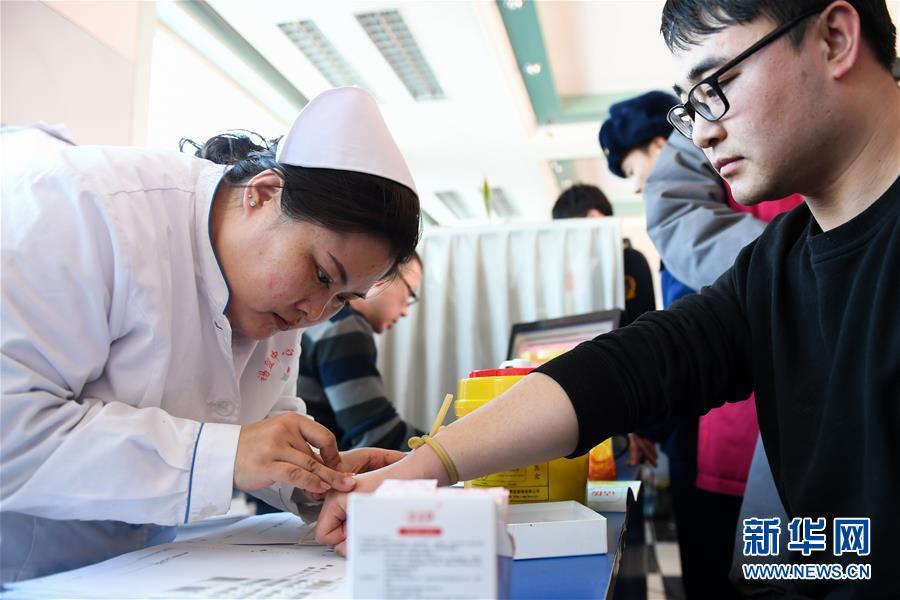 2月24日,在錫林郭勒盟中心血站,工作人員在為前來(lái)獻(xiàn)血的志愿者檢驗(yàn)血型。 內(nèi)蒙古自治區(qū)錫林郭勒盟“2·23”重大事故傷者正在錫林郭勒盟醫(yī)院、錫林郭勒盟蒙醫(yī)醫(yī)院接受救治。因用血需求量大,當(dāng)?shù)匮獛?kù)庫(kù)存一度低于警戒線。在當(dāng)?shù)卣h下,各單位職工、市民紛紛前往錫林郭勒盟中心血站獻(xiàn)血。截至24日16時(shí),已有220余名志愿者完成獻(xiàn)血,采集全血6.8萬(wàn)毫升,機(jī)采血小板9個(gè)治療量。 新華社記者 劉磊 攝