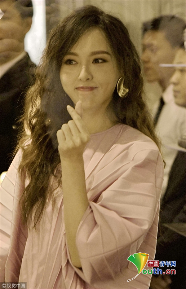 唐嫣隔玻璃比心與粉絲互動 路人視角也美到窒息