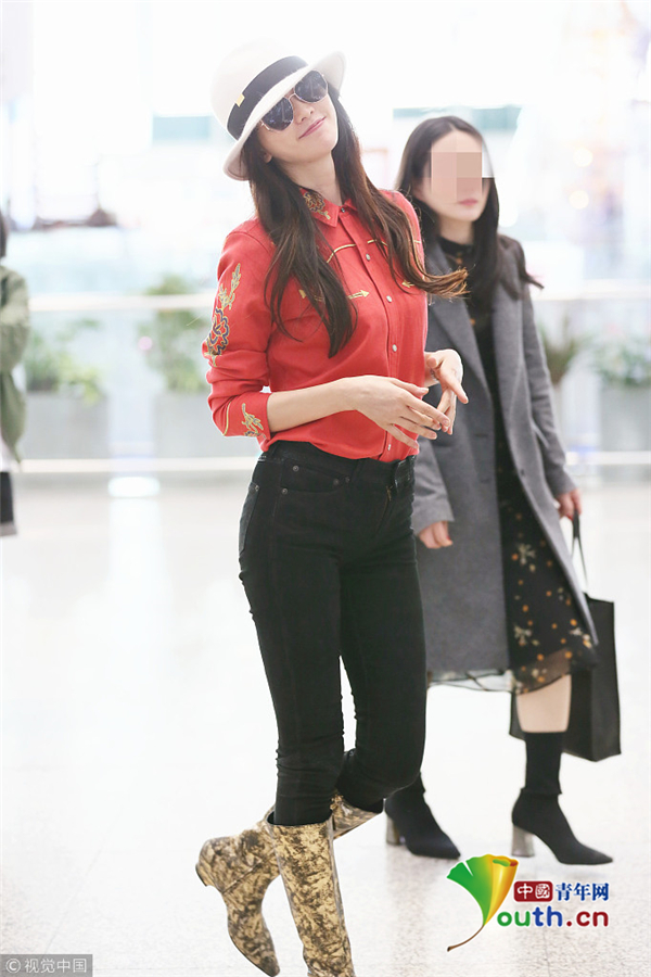 2019年2月17日訊,近日林志玲現(xiàn)身深圳寶安機場,戴著圓禮帽的她黑超遮面,身著紅色襯衣加黑色緊身牛仔褲,一雙長腿吸睛十足,見鏡頭跟拍再不時歪頭揮手,超級可愛!