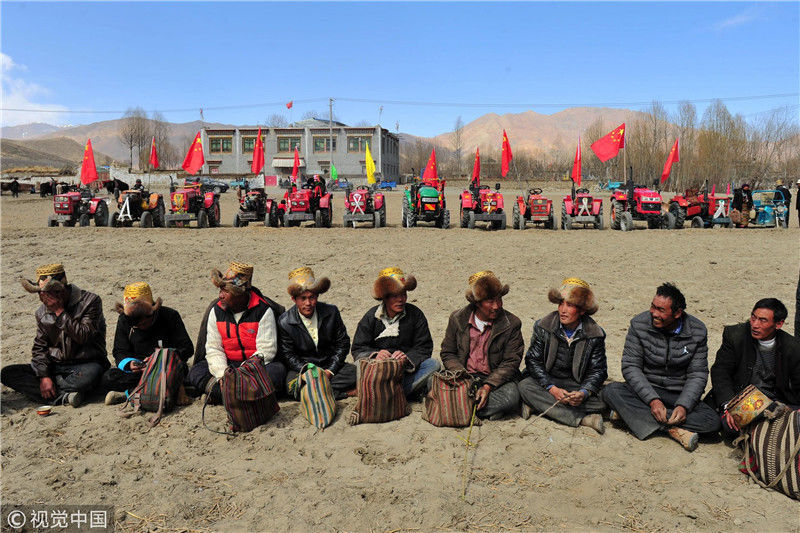 圖為白朗縣洛江鎮(zhèn)康薩村村民聚在一起,喝青稞酒酥油茶,共話新春農(nóng)事。他們身后是一排手扶拖拉機,近年來,西藏農(nóng)業(yè)機械化程度越來越高。