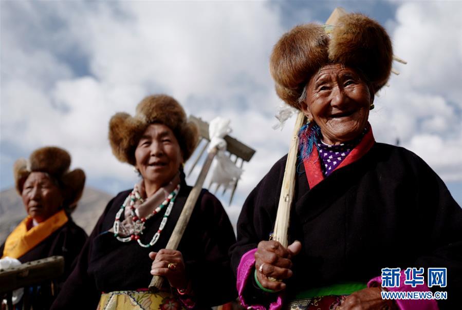 3月16日,山南市乃東區(qū)克松社區(qū)居民在開耕儀式上。 當日,西藏各地男女老幼身著節(jié)日盛裝,駕著一輛輛由彩旗、花朵裝扮一新的拖拉機,涌向待墾的農(nóng)田,載歌載舞迎來一年一度的開耕儀式。 新華社記者 普布扎西 攝