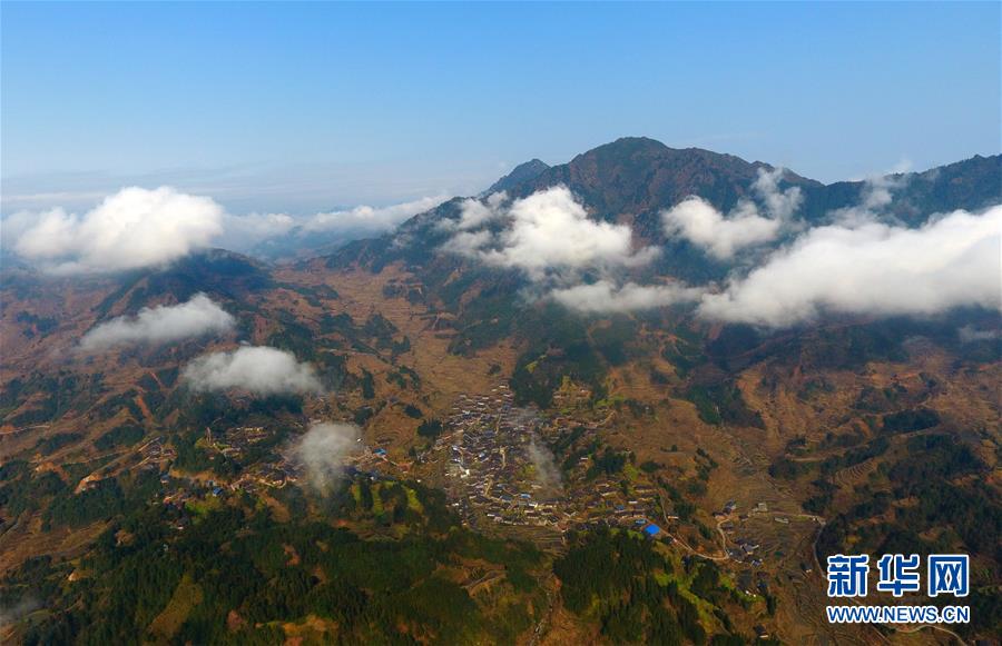 這是黔桂烏英苗寨春色(3月20日無人機拍攝)。
