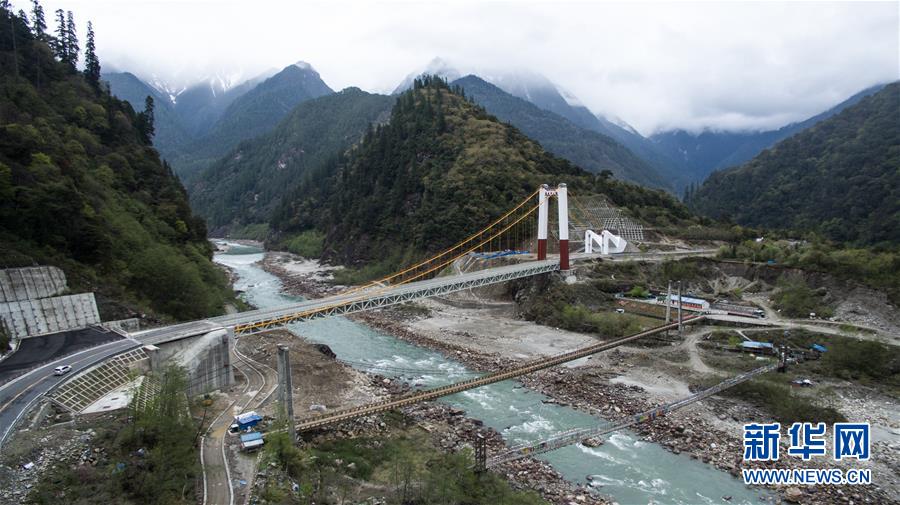 這是三個(gè)時(shí)期的林芝易貢大橋(2016年3月29日無(wú)人機(jī)拍攝)。 新華社記者 普布扎西 攝