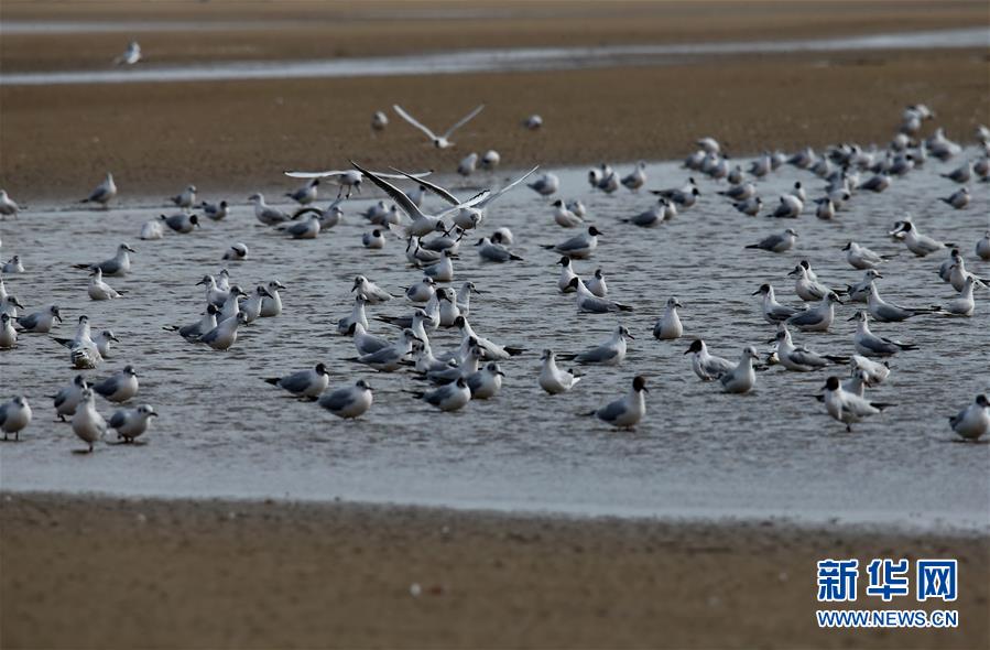 4月4日,一群候鳥在秦皇島市沿海濕地休憩。近日,大批候鳥飛抵河北省秦皇島市沿海濕地,出現(xiàn)“萬鳥臨?!逼嬗^。秦皇島沿海濕地鳥類食物豐富,每年春、秋兩季,大批候鳥遷徙經(jīng)過這里。新華社記者 楊世堯 攝