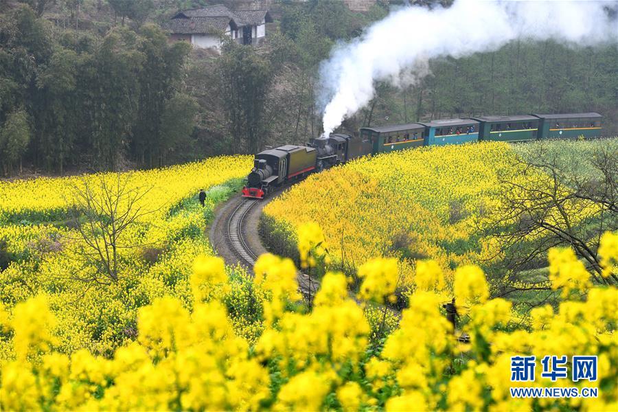 初春時(shí)節(jié),在花海中穿行的嘉陽(yáng)小火車迎來了每年的旅游旺季,眾多游客慕名前來乘坐。