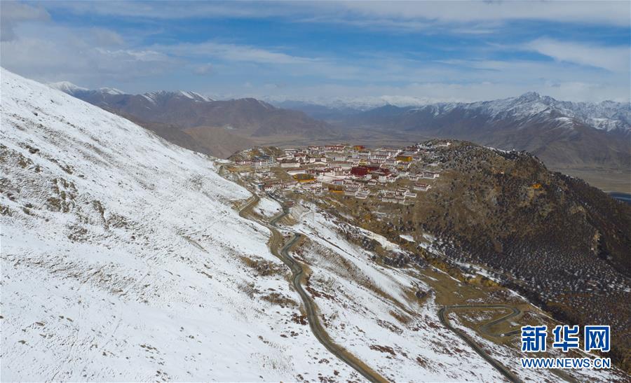 雪后的甘丹寺(4月8日無人機(jī)拍攝)。 新華社記者普布扎西攝