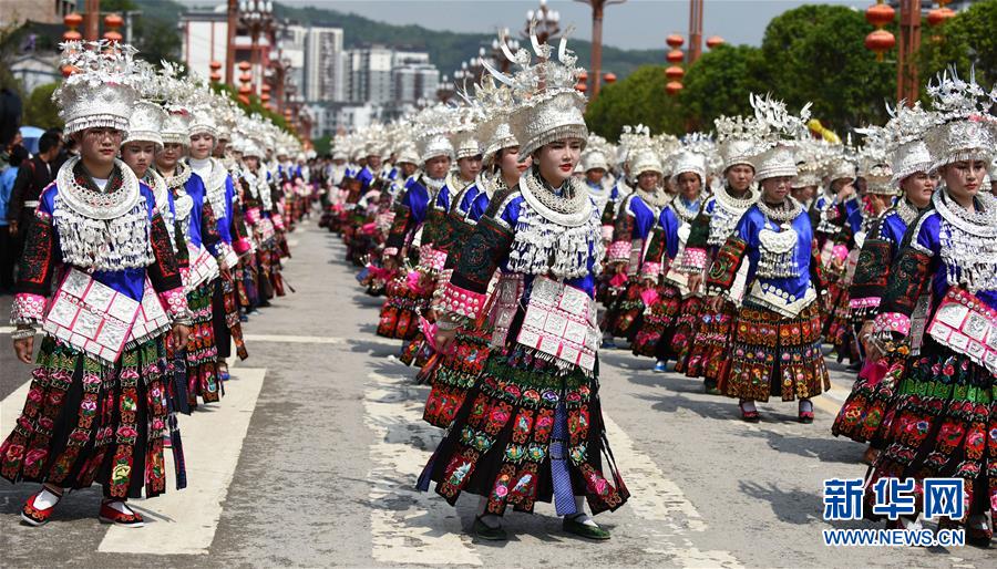4月18日,臺(tái)江縣苗族群眾參加盛裝游演活動(dòng)。 當(dāng)日,貴州省黔東南苗族侗族自治州臺(tái)江縣迎來一年一度的苗族姊妹節(jié)。節(jié)日期間將舉行苗族盛裝游演、千人長桌宴、千人游方體驗(yàn)、苗族手工創(chuàng)意大賽等一系列活動(dòng)。 姊妹節(jié)是臺(tái)江縣苗族同胞的傳統(tǒng)節(jié)日,2006年被列入第一批國家級非物質(zhì)文化遺產(chǎn)名錄。 新華社記者 楊文斌 攝