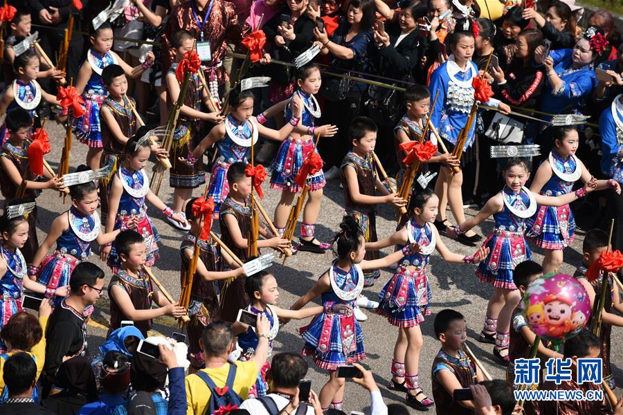 4月18日,臺(tái)江縣苗族群眾參加盛裝游演活動(dòng)。 當(dāng)日,貴州省黔東南苗族侗族自治州臺(tái)江縣迎來一年一度的苗族姊妹節(jié)。節(jié)日期間將舉行苗族盛裝游演、千人長(zhǎng)桌宴、千人游方體驗(yàn)、苗族手工創(chuàng)意大賽等一系列活動(dòng)。 姊妹節(jié)是臺(tái)江縣苗族同胞的傳統(tǒng)節(jié)日,2006年被列入第一批國家級(jí)非物質(zhì)文化遺產(chǎn)名錄。 新華社記者 楊文斌 攝