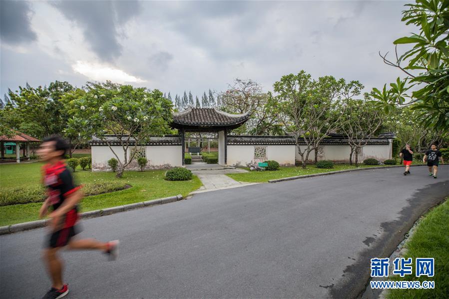 2019年4月3日,鍛煉身體的民眾經(jīng)過(guò)泰國(guó)曼谷九世王御園內(nèi)的中式園林“智樂(lè)園”。這座園林是1988年中國(guó)政府贈(zèng)送給泰國(guó)九世王普密蓬的60歲壽辰禮物,“智樂(lè)園”之名取自論語(yǔ)“仁者樂(lè)山,智者樂(lè)水”。 新華社記者張可任攝