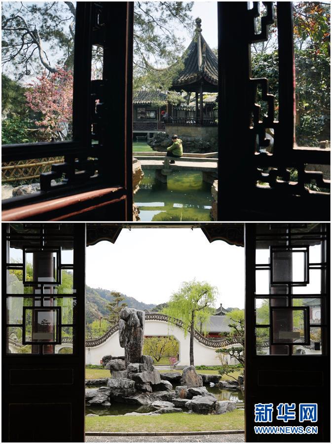 這張拼版照片展示的是:上圖,2019年4月2日拍攝的中國(guó)蘇州留園一景(新華社記者杜涓涓攝);下圖,2017年4月28日拍攝的美國(guó)紐約寄興園一景(新華社記者王迎攝)。