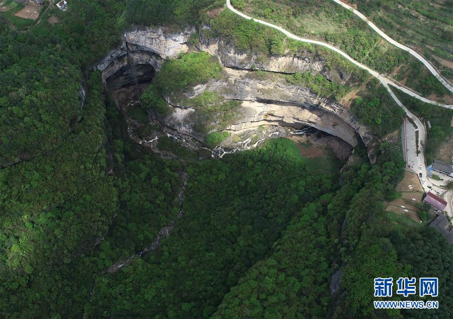 這是4月22日在陜西省漢中市寧強(qiáng)縣火石子村用無(wú)人機(jī)拍攝的地洞河天坑。位于陜西省漢中市寧強(qiáng)縣的地洞河天坑,是禪家?guī)r天坑群中規(guī)模最大的一處天坑,坑內(nèi)分布有石鐘乳、石筍,具有極高的地質(zhì)研究?jī)r(jià)值。 新華社記者 張博文 攝