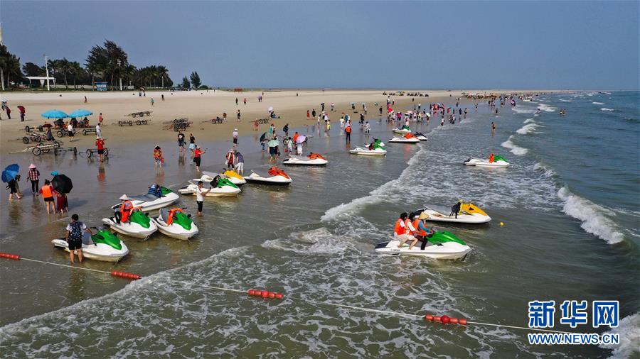 這是游客在北海銀灘游玩(4月18日無人機(jī)拍攝)。 北部灣畔南端的江山半島,76公里海岸線上,昔日沿岸漁村如今“長”出20多個景區(qū)。每逢節(jié)假日,四面八方的游客將這里堆得人山人海。 近年來,北部灣國際旅游度假區(qū)正成為廣西旅游業(yè)的一顆耀眼明珠。在綠色之海、開放之海理念的指導(dǎo)下,發(fā)展的東風(fēng)掀開這片南疆海域 “面紗”,昔日漁港正變?yōu)闉I海旅游勝地。 新華社記者張愛林?jǐn)z