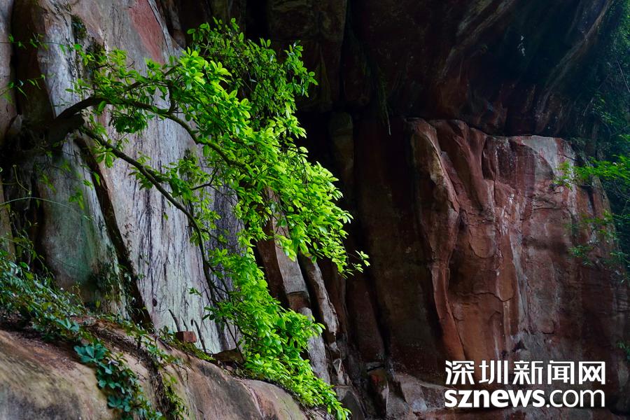 丹霞地貌與大面積古植被和2359 種動(dòng)植物、珍稀瀕危動(dòng)植物共存,是赤水丹霞最獨(dú)特的特征。點(diǎn)綴在原始森林、竹海、桫欏之間,猶如紅寶石鑲嵌在綠洲之中,是世界罕見的綠色丹霞景觀。李仁奇 攝