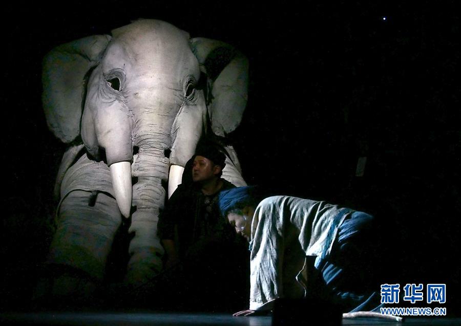 5月15日在上海美琪大戲院拍攝的新版大型人偶舞臺劇《最后一頭戰(zhàn)象》劇照。 當日,作為第12屆中國藝術(shù)節(jié)的參演劇目,大型人偶舞臺劇《最后一頭戰(zhàn)象》在經(jīng)過4次硬件技術(shù)升級和故事修改后亮相上海美琪大戲院。 新華社記者 任瓏 攝