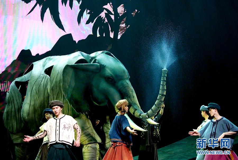 5月15日在上海美琪大戲院拍攝的新版大型人偶舞臺(tái)劇《最后一頭戰(zhàn)象》劇照。 當(dāng)日,作為第12屆中國藝術(shù)節(jié)的參演劇目,大型人偶舞臺(tái)劇《最后一頭戰(zhàn)象》在經(jīng)過4次硬件技術(shù)升級(jí)和故事修改后亮相上海美琪大戲院。 新華社記者 任瓏 攝