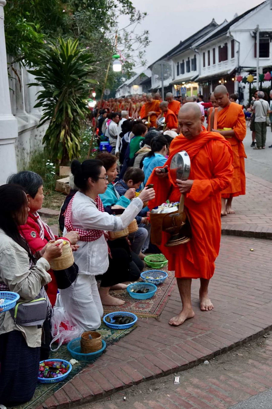 布施過程肅穆平靜,彰顯了老撾人民的淳樸善良。