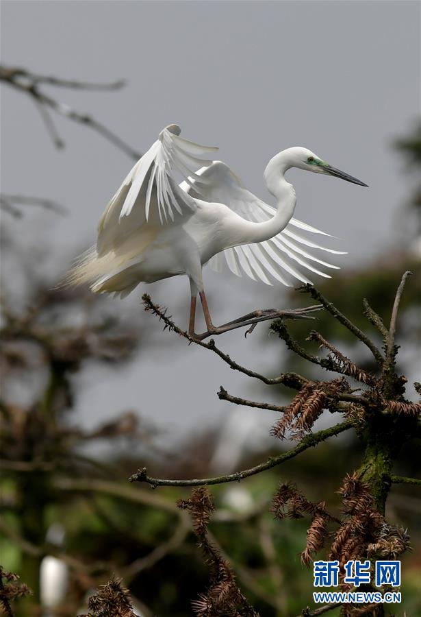 在江西省南昌市新建區(qū)象山森林公園內(nèi),一只白鷺正降落在枝頭(5月21日攝)。 近日,在江西省南昌市新建區(qū)象山森林公園內(nèi),已安家筑巢的大批鷺鳥陸續(xù)孵化出了后代。象山森林公園有著“鷺鳥王國”的美譽(yù),生態(tài)環(huán)境良好,每年都會吸引白鷺、蒼鷺、夜鷺等種類的鷺鳥飛抵棲息和繁衍后代。 新華社記者 彭昭之 攝