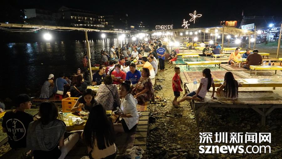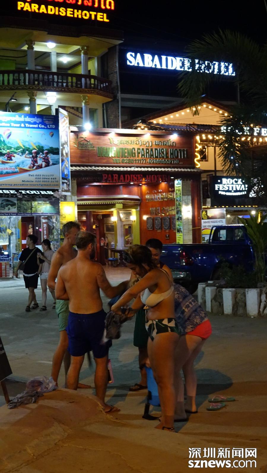 萬(wàn)榮的開(kāi)放程度很高。夜晚,南松河畔、街道兩旁都是酒吧,常常可以看到漂流回來(lái)身著泳裝的“老外”當(dāng)街站立。李仁奇 攝