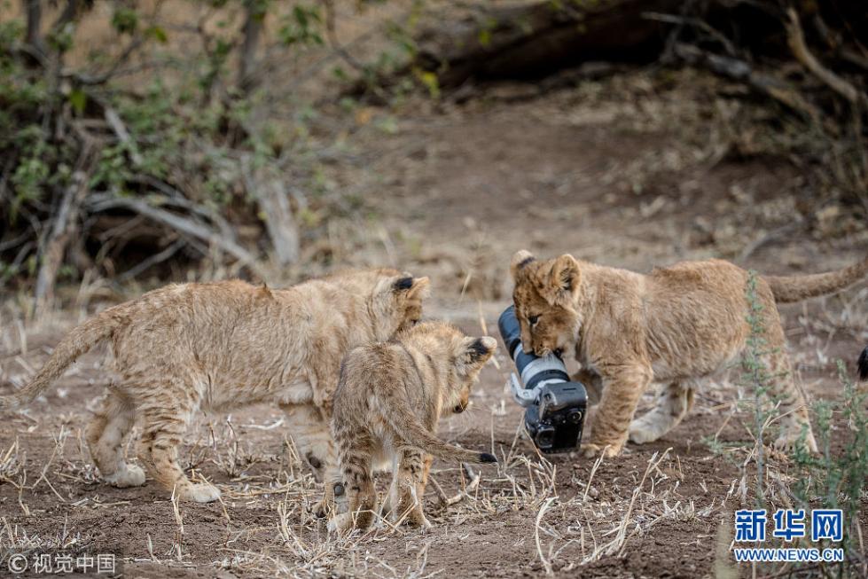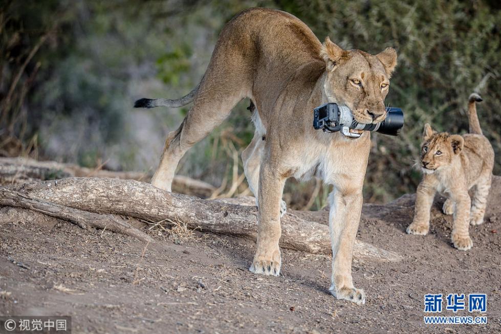 近日,非洲博茨瓦納馬沙圖野生動物保護區(qū)內(nèi)一頭獅子叼起攝影師掉落在地上的相機,之后還將相機交給小獅子們玩耍,看起來十分好奇,而攝影師非常無奈?,F(xiàn)年57歲的叢林探險家Barbara Jensen Vorster在一輛越野車上為馬沙圖野生動物保護區(qū)的獅群拍照時,相機不小心掉到了地上。砰的一聲響驚動了母獅子,它向攝影師方向移動,迫使探險隊撤退。(圖片來源:視覺中國)