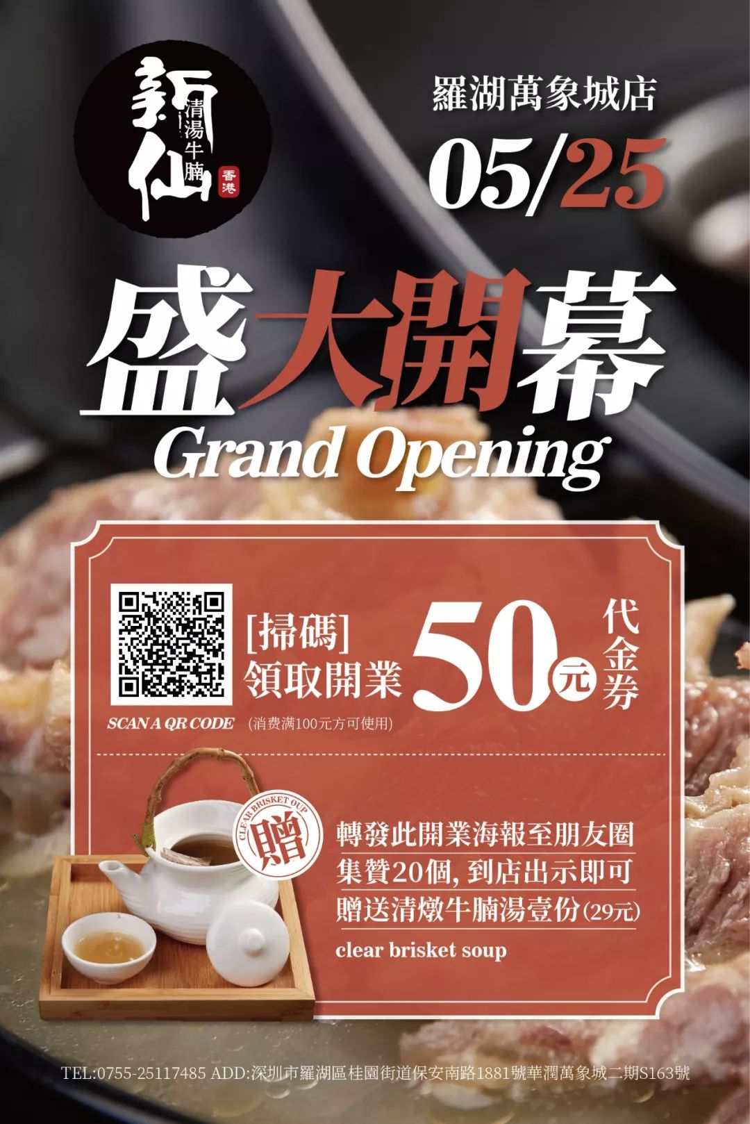 新仙精選每頭牛最精華的三個(gè)部分:崩沙腩、爽腩和坑腩,每天凌晨5點(diǎn)采運(yùn)最新鮮的食材到店,再用文火煮制24小時(shí),保證湯鮮肉滑、牛腩的肉汁足夠鮮美。25號(hào)到店同樣有驚喜,別忘了先掃碼領(lǐng)券哦!還等什么?趕緊約上朋友一起來(lái)享受被米其林承包一日三餐的幸福吧!