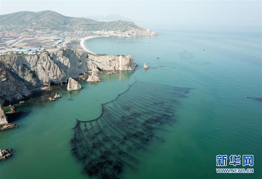 大欽島鄉(xiāng)近海的海帶養(yǎng)殖區(qū)(5月23日無人機(jī)拍攝)。