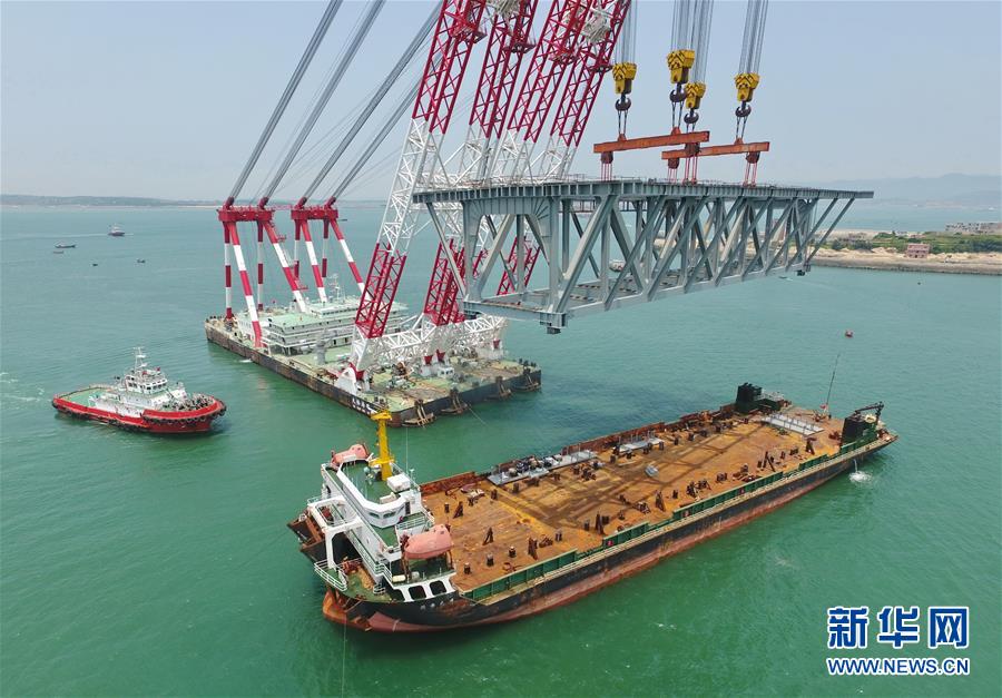 6月5日,福平鐵路平潭海峽公鐵兩用大橋元洪航道橋主橋正式合龍。 新華社記者 林善傳 攝