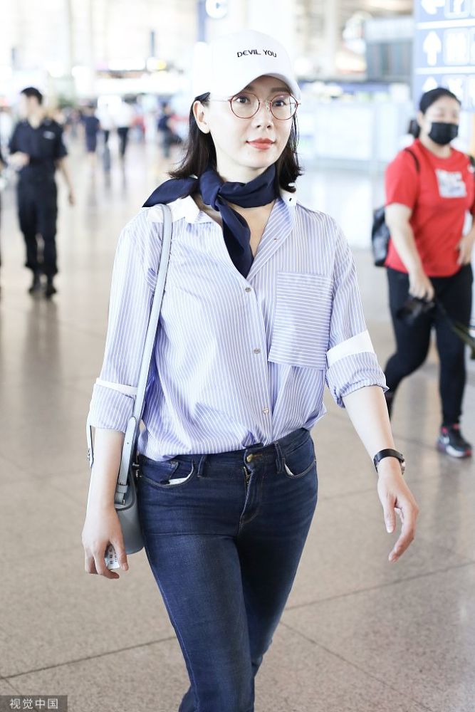 2019年6月30日,北京,陳數(shù)亮相機(jī)場,她身穿條紋襯衫搭配藍(lán)色方巾完美詮釋知性美,簡單造型非常耐看,已經(jīng)42歲的她皮膚也是亮白嫩滑,堪稱凍齡美人了。