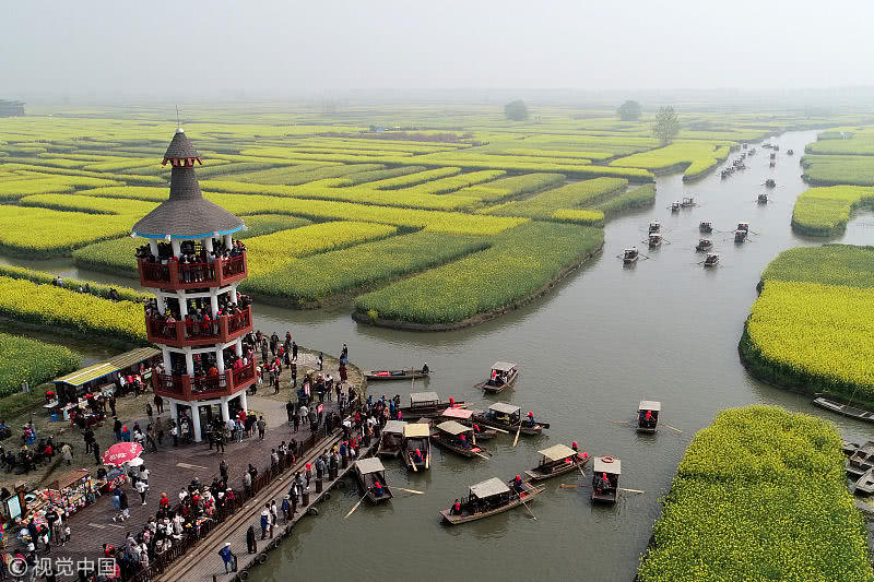 2019年4月7日,江蘇省興化市千垛菜花景區(qū)迎來旅游高峰期,數萬游客前來欣賞盛開的油菜花,樂享假日好時光。