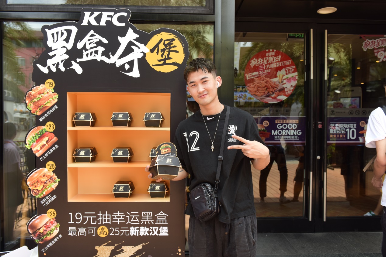 擁有“潘多拉”誘惑的“盲盒”,是潮人們的新寵。他們熱衷于購(gòu)買(mǎi)一個(gè)個(gè)神秘的盒子,拆出意想不到的服裝、玩具等。而在肯德基,特制的黑色盒子中,能開(kāi)出的是未知的美味,驚喜你的味蕾!7月7日,位于深圳、珠海的50多家肯德基餐廳,“黑盒奪堡”神秘啟動(dòng)!在設(shè)計(jì)精美的“黑盒販賣(mài)機(jī)”前,拿出手機(jī)通過(guò)掃描二維碼付款19元,即可購(gòu)得一個(gè)價(jià)值最高達(dá)25元的“黑盒”,內(nèi)含一枚肯德基漢堡。