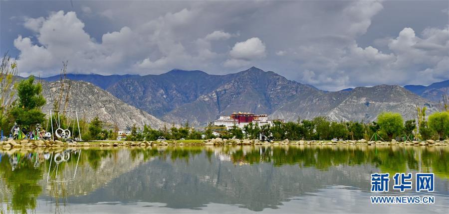 6月5日拍攝的藍天白云和綠水之間的布達拉宮。