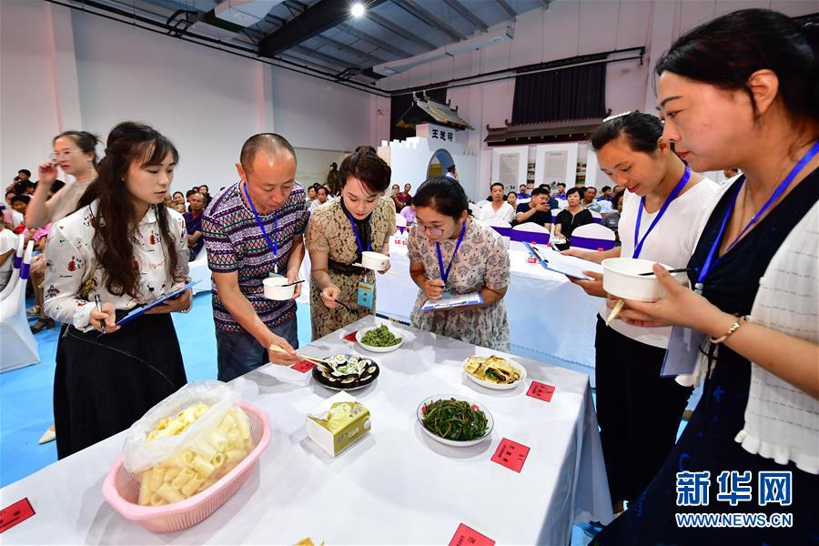 8月3日,在鄉(xiāng)村美食文化大賽現(xiàn)場(chǎng),評(píng)委在對(duì)菜品進(jìn)行評(píng)定。新華社記者馮大鵬攝