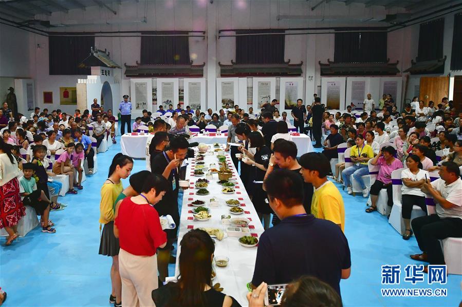 這是8月3日在河南省鶴壁市淇濱區(qū)鉅橋鎮(zhèn)崗坡村拍攝的鄉(xiāng)村美食文化大賽總決賽現(xiàn)場(chǎng)。新華社記者馮大鵬攝