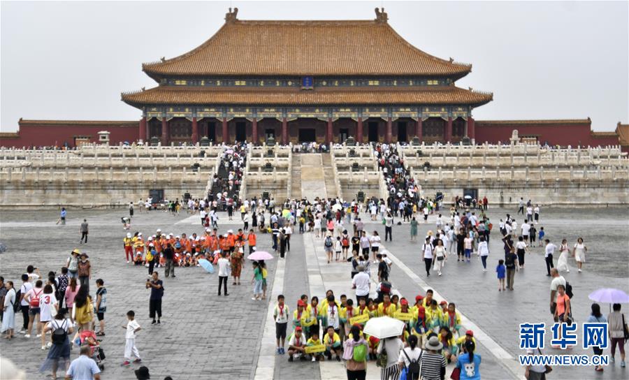 8月3日,游客在故宮參觀。進入暑期以來,北京故宮博物院迎來游覽高峰。故宮博物院采取每日游客限流、熱點景區(qū)導(dǎo)流、供水和醫(yī)療保障等措施,確保游客安全。新華社記者李欣攝
