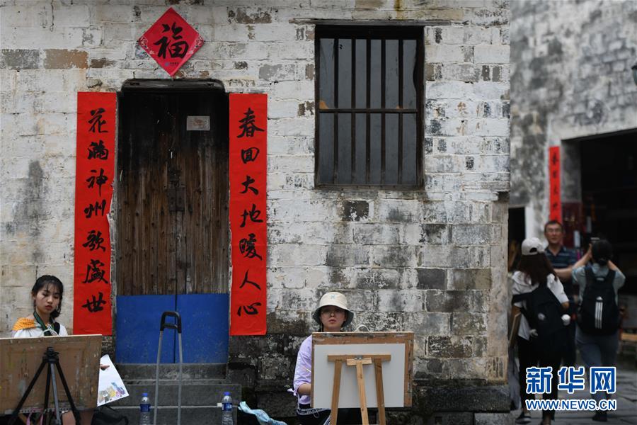 4月24日,繪畫愛好者在西遞風(fēng)景區(qū)寫生。近日,隨著氣溫升高,位于安徽省黟縣的古村落西遞和宏村春意盎然,景色如畫。大批繪畫愛好者前來(lái)寫生,用畫筆描繪古村春色。 新華社記者 張端 攝