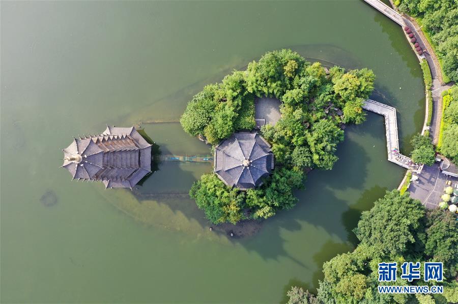 桂林市杉湖景觀(7月1日無人機拍攝)。 夏日時節(jié),廣西桂林市區(qū)內(nèi)的榕湖、杉湖、桂湖、木龍湖等地綠樹成蔭、景色迷人。 新華社記者陸波岸攝