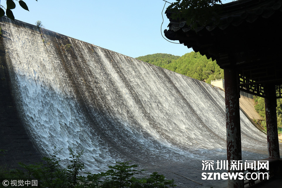暴雨過后,泰山西溪百丈崖,瀑布猶如玉龍,宛如白雪,從崖巔凌空而降,不少市民及游客駐足壯觀的瀑布前,流連忘返。