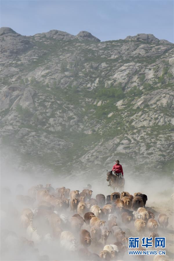 這是牧道上轉(zhuǎn)場(chǎng)的牲畜(6月6日攝)。新華社記者丁磊攝