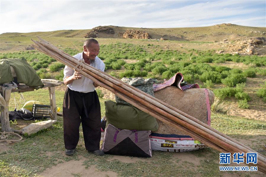 在新疆阿勒泰地區(qū)福??h牧區(qū),牧民在制作氈房飾品(6月5日攝)。眼下,隨著新疆多地夏季牧場(chǎng)開(kāi)放,阿勒泰地區(qū)的哈薩克族牧民又迎來(lái)了轉(zhuǎn)場(chǎng)季,他們趕牛羊,逐水草,游走在阿爾泰山間的牧道上,形成一道流動(dòng)的風(fēng)景。轉(zhuǎn)場(chǎng)時(shí),牧民們攜子女及親屬騎馬趕著牲畜徐徐前行,駝隊(duì)或馬隊(duì)馱著全部家當(dāng),走到哪里,晚上就宿營(yíng)在哪里。與傳統(tǒng)轉(zhuǎn)場(chǎng)方式不同,隨著生活條件的改善,一些牧民會(huì)雇汽車將家中的大件物品提前運(yùn)送到目的地,轉(zhuǎn)場(chǎng)途中只需準(zhǔn)備食物和簡(jiǎn)易氈房便可以輕裝前行……新華社記者丁磊攝