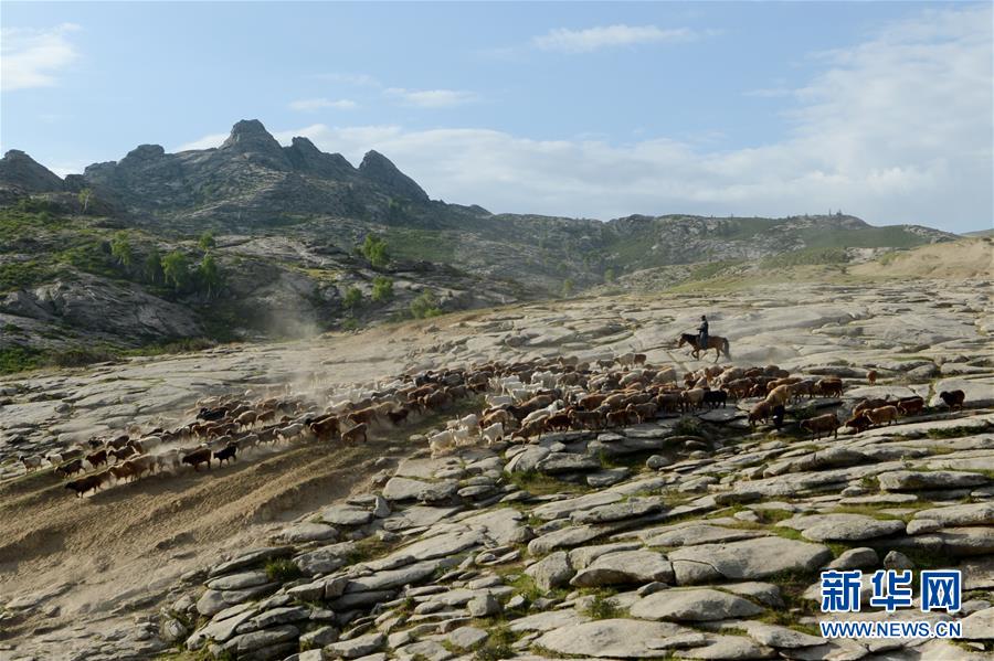 6月6日,新疆阿勒泰地區(qū)福??h牧民趕著牲畜向夏季牧場(chǎng)遷徙新華社記者 丁磊 攝
