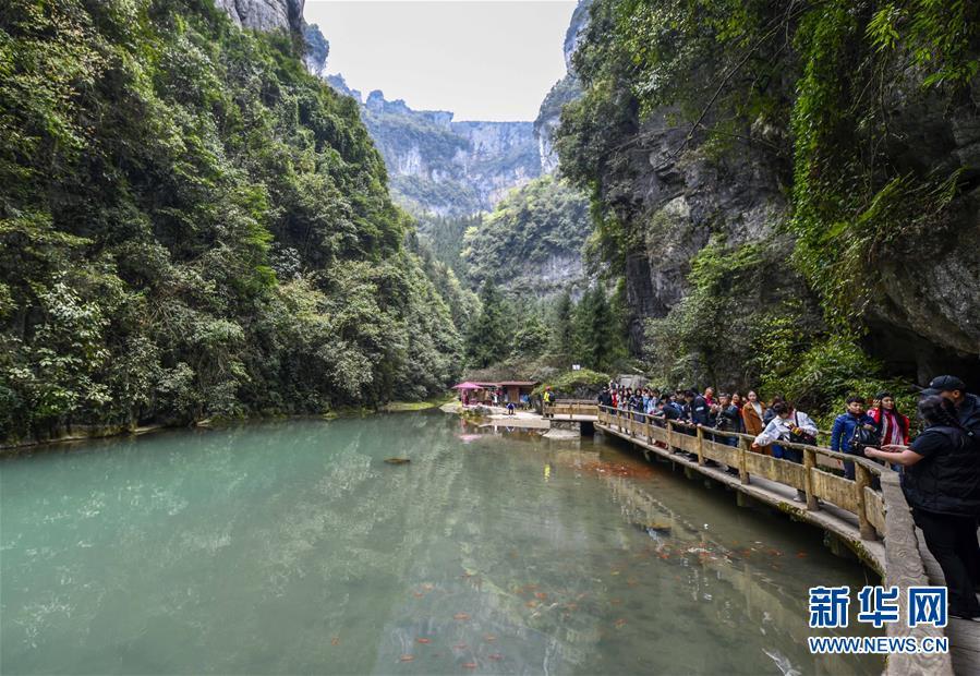游客在天生三橋景區(qū)游覽(3月27日攝)。新華社記者劉潺攝