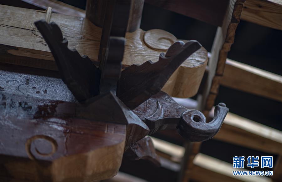石屏縣異龍鎮(zhèn)符家營村211號民居中修繕完成的木斗拱(8月8日攝)。新華社記者 江文耀 攝