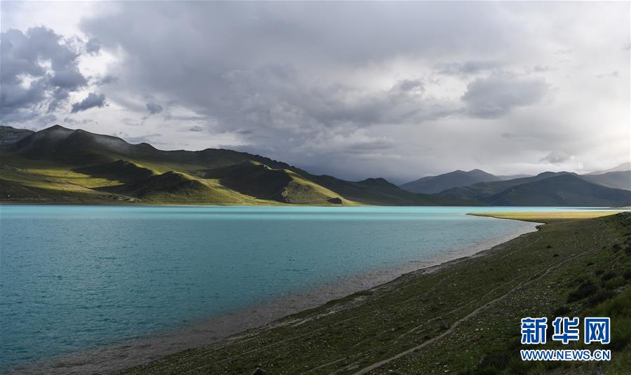 8月31日無(wú)人機(jī)拍攝的羊卓雍錯(cuò)風(fēng)光。 新華社記者 晉美多吉 攝