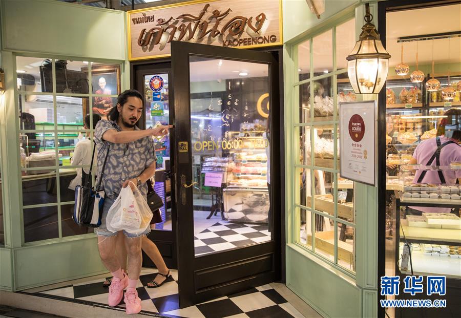 9月1日,顧客在泰國曼谷著名的“九姐妹甜點”店購買傳統(tǒng)泰式甜點。新華社記者 張可任 攝