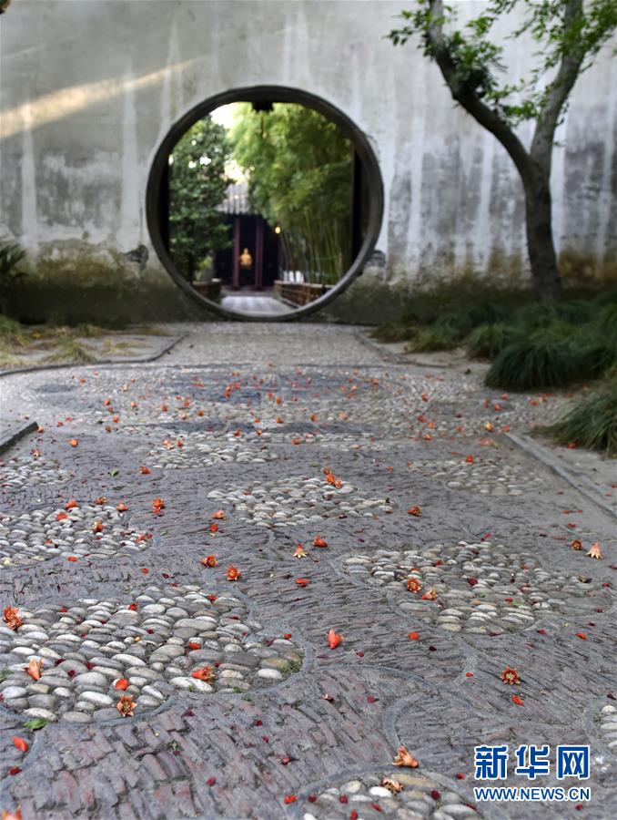 這是蘇州獅子林墻壁上的斑駁樹影(5月23日攝)。 新華社記者 沈伯韓 攝