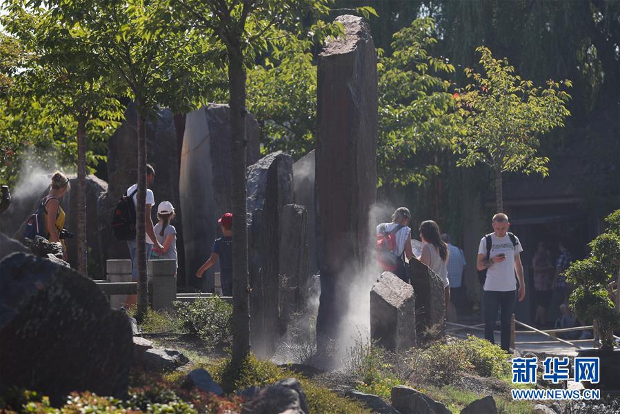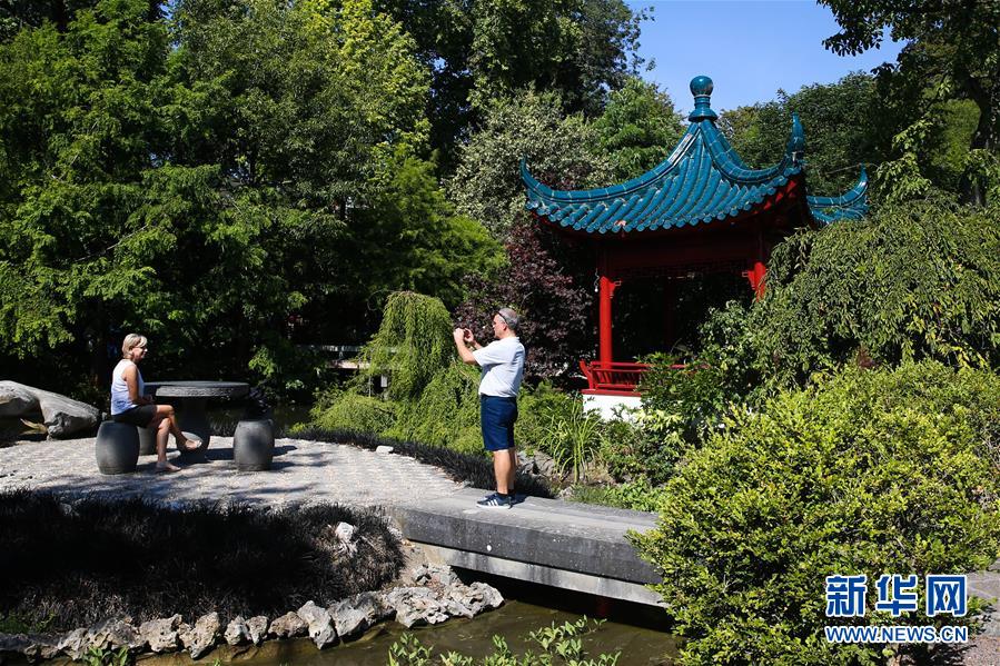 8月24日,在比利時布呂熱萊特市,游客參觀天堂動物園的“中國園”。新華社記者鄭煥松攝