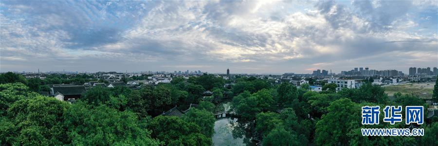 這是5月9日無人機(jī)拍攝的江蘇蘇州拙政園。 新華社記者李博攝